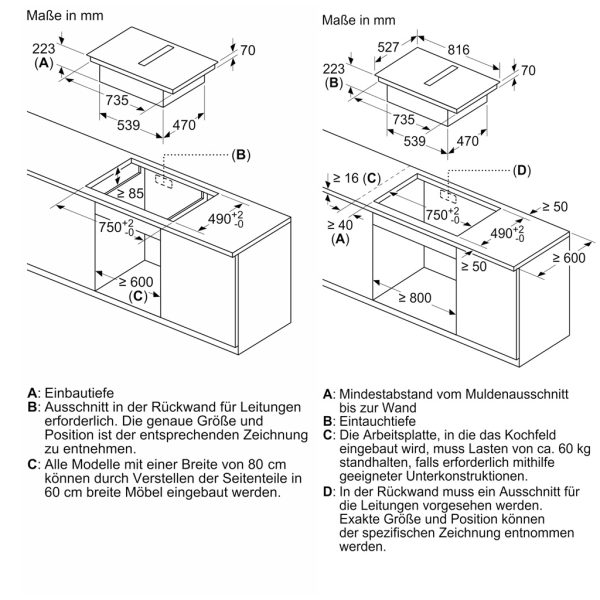 | Kích thước lắp đặt (C x R x S) | 223 x 750 x 490 mm |